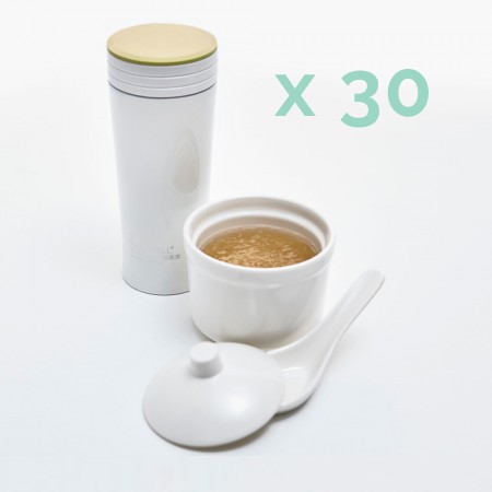 现在您可以在家中的舒适环境里,通过我们的特别配送服务,享用一碗用心炖制的纯珍鲜炖燕窝。它配有一个设计优雅且功能实用的瓷质保温瓶。